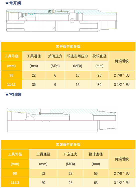 循环阀是一种井下建立油套连通的一种循环工具,一般采用投球或压差方式对循环通道进行打开或关闭操作,常用的循环阀主要有常开阀、常闭阀、压差式循环阀、E 型循环阀。