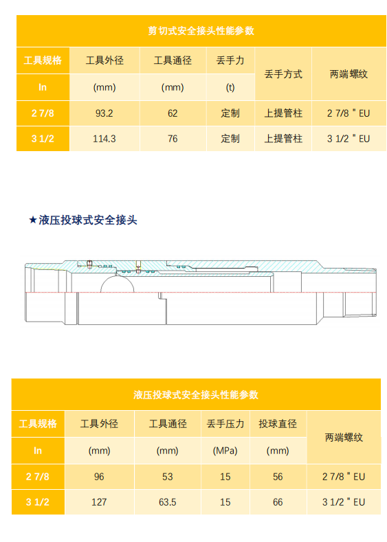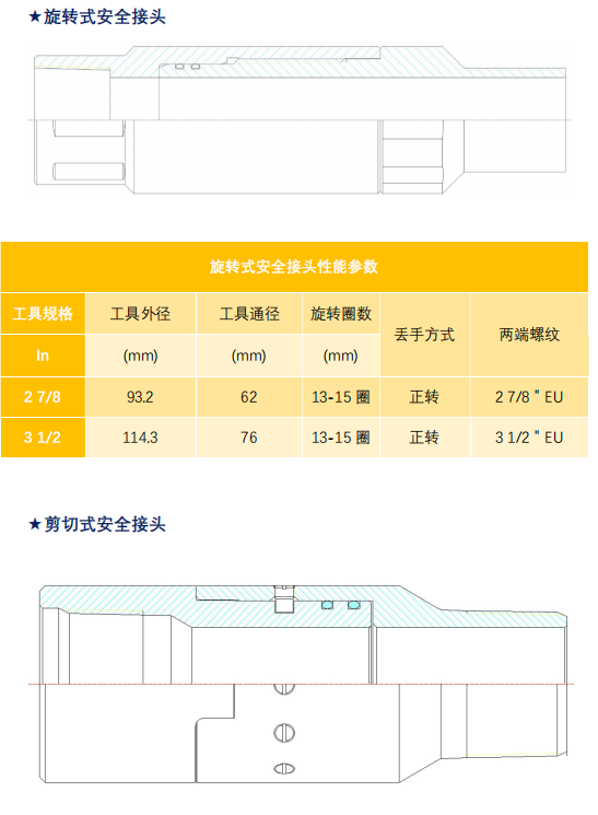 安全接头是保护井下作业管柱的核心工具,当出现事故、卡钻、封隔器无法解封时,可通过旋转管柱、上提管柱以及投球憋压等操作将安全接头以下工具丢手,起出安全接头以上管柱,方便后续打捞等作业。